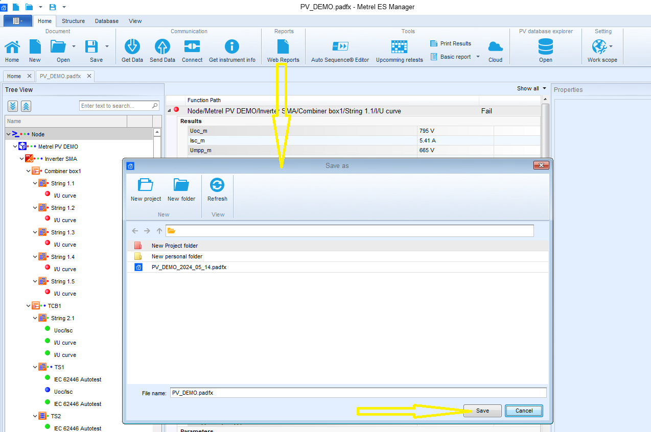 WebReport can be created from padfx file. Padfx file must be uploaded / saved to Metrel Cloud first to create WebReport from this padfx file. There are two options to upload padfx file to Metrel Cloud: