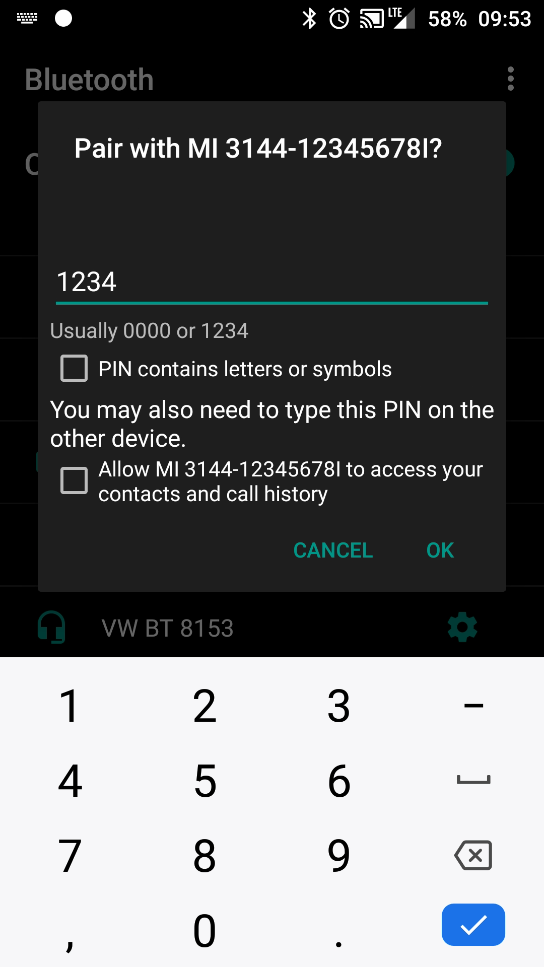 Use the default PIN 1234 to pair