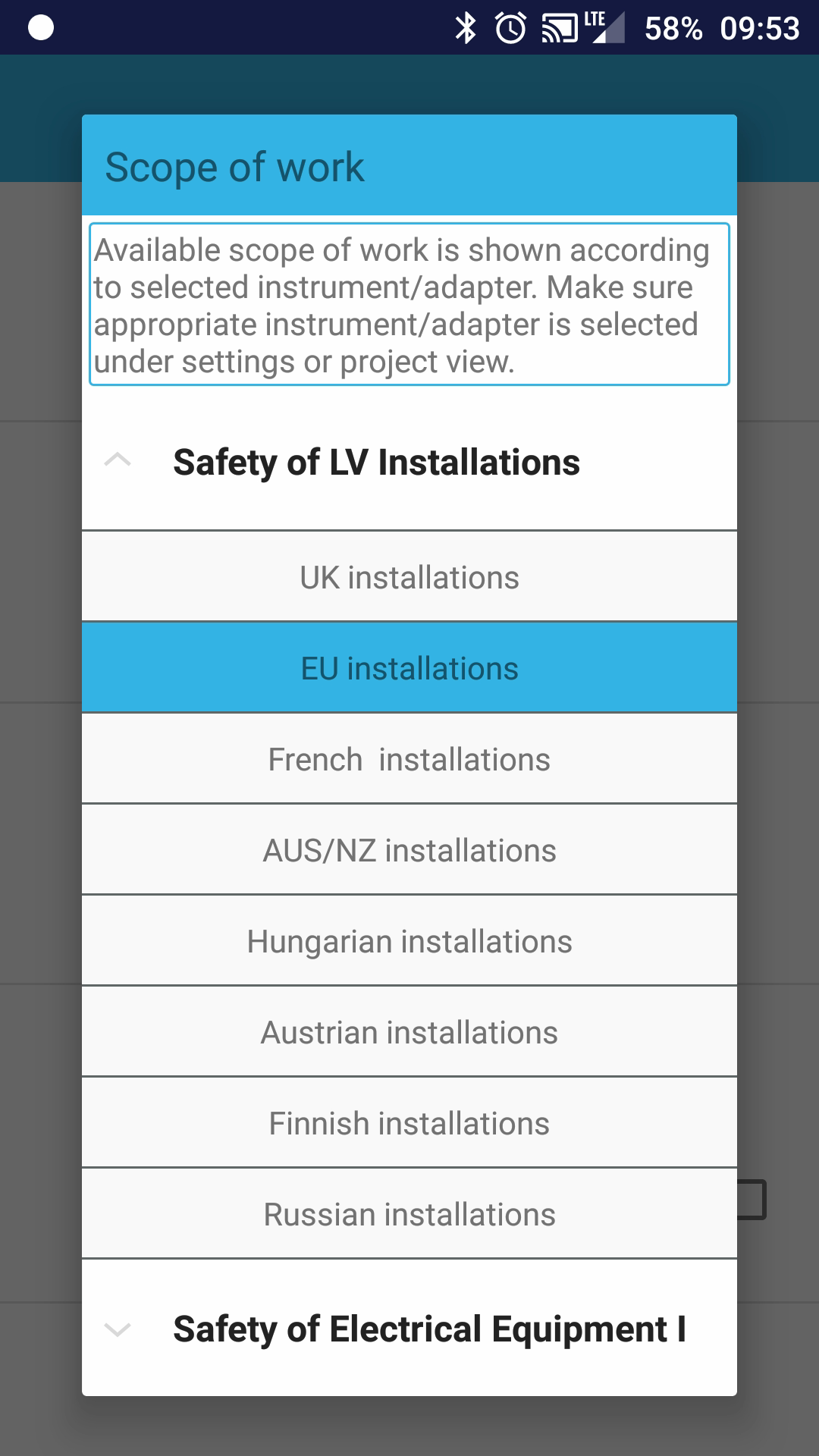 Example: "Safety of LV installations" → EU installations