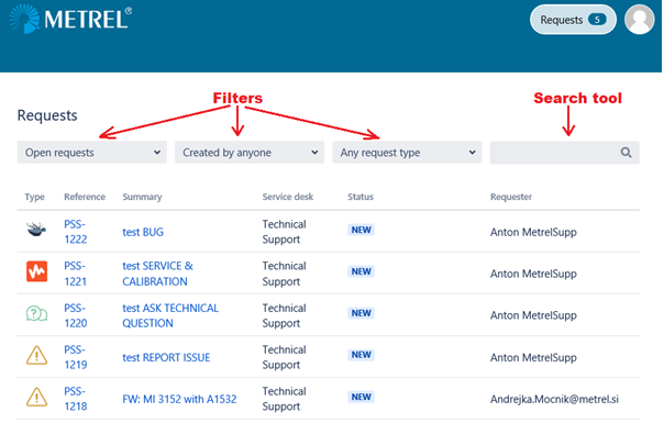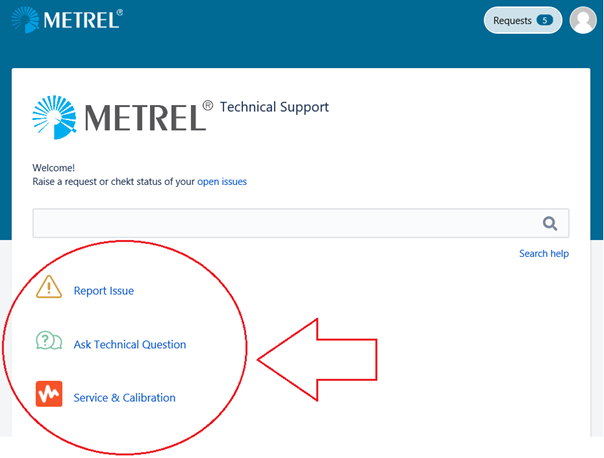 New request can be created from Dashboard after the login is done at https://www.metrel.si/support/