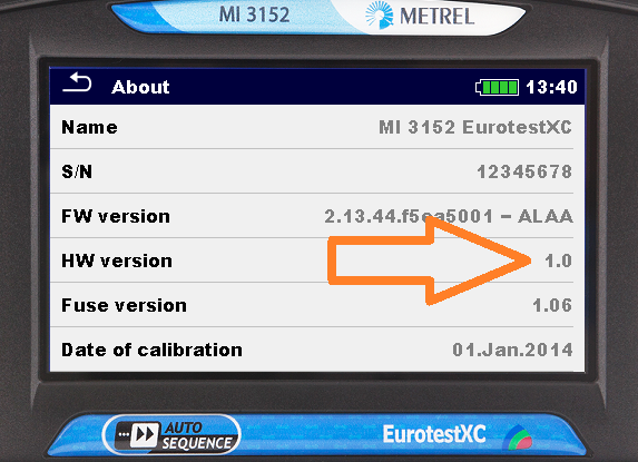 Tester’s HW version info can be found in “About” menu located in “General Settings” of main menu.